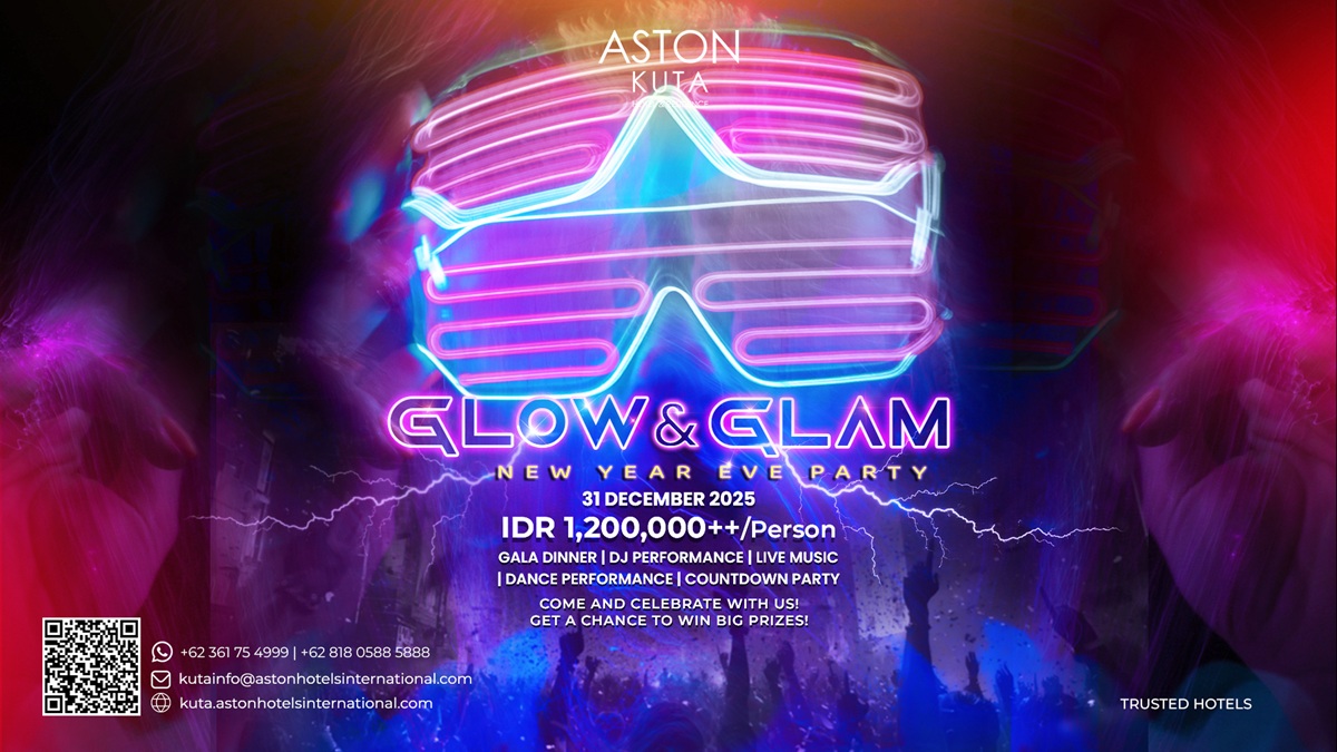 Menjelang pergantian tahun, Aston Kuta menghadirkan Glow & Glam New Year’s Eve Party, sebuah pesta bernuansa futuristik dengan sentuhan energi dan warna yang kuat. Dengan harga IDR 1.200.000++ per orang, para tamu akan menikmati rangkaian acara mulai dari Gala Dinner, penampilan DJ dan live music, pertunjukan tari, hingga countdown party di The Lighthouse Rooftop yang dirancang untuk menciptakan momentum yang berkesan. Tamu juga berkesempatan memenangkan undian hadiah menarik, menambah nilai lebih dalam pengalaman menyambut tahun baru.