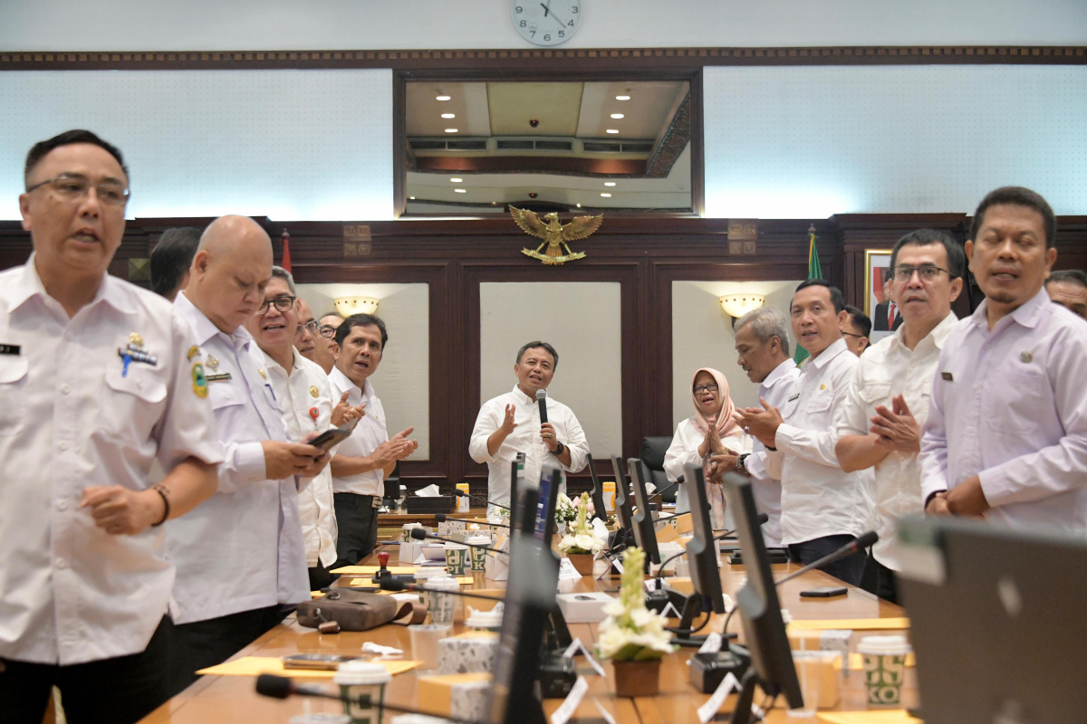 LIPUTAN BANDUNG-Sekretaris Daerah Provinsi Jawa Barat Herman Suryatman menghadiri Rapat Koordinasi Inspektur Daerah Provinsi Jabar dan Inspektur Daerah Kabupaten dan Kota di Jabar di Ruang Rapat Papandayan, Gedung Sate, Kota Bandung, Rabu (19/6/2024).